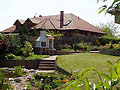 Tervezés: 2001, elkészült: 2003Terekterület: 980 m2 Sok ember szereti kertjét, és büszke is rá. Ennél kevesebb azonban azok száma, akik saját magukat is „beleálmodják” házuk, kertjük terveibe, saját lelküket is beleépítik a készülő „műalkotásba”. A kert történetéhez szorosan hozzátartozik a tulajdonosok életszemléletének alakulása. Ennek megismeréséhez 25 évet kell visszaugranunk az időben, amikor munkájuknak köszönhetően 5 csodálatos évet töltöttek Görögországban, ami mély nyomott hagyott lelkükben. Ott estek „közösen szerelembe” flórával és faunával, ott kezdtek foglalkozni azzal, mit jelent a kert az élő környezet. A mediterrán országból hazatérve a kert iránti, egyre erősödő szenvedélyüket egy budapesti sorházban élhették ki, csaknem két évtizedig. Néhány évvel ezelőtt, a város közelsége, és a parányi zöldfelület miatt azonban mindenképpen váltani szerettek volna. Időközben munkájuk 5 évig, a háború által meggyötört Boszniába vezette őket. Kertjük itt csupán egy 5x2 méteres kertre korlátozódott, amelyet a „helyi” rózsák mellett, zömében Magyarországról „importált”, saját nevelésű, hatalmas leánderek hibiszkuszok, fuksziák díszítettek. Új, hazai otthonuk megteremtését innen kezdték el szervezni. A nagyszülők háza, egykor a Pilisben állt. Az emlékek miatt egyértelmű volt, hogy a környéken kerestek telket. A ház asszony már az elsőbe beleszeretett, amit megnézett. Mivel a házaspár egyszerre szinte soha nem tudott hazautazni, férjének csak telefonon mesélt „szíve választottjáról”. Némi mérlegelés után, két nap múlva magukénak mondhatták az erdőszéli telket. Az épület tervezője, elképzeléseik és kívánságaik figyelembe vételével, olyan házat ígért, amelyben minden fontos funkció – nappali, konyha, étkező, háló, garázs – a földszinten kap helyet. Sokáig csiszolták együtt az elképzeléseket, amíg a tervekben álmaink megvalósulását látták. Ekkor döbbentek rá, hogy bár ezt így soha nem mondták ki, valójában mediterrán stílusú házat képzeltek el lakóhelyüknek, pont olyat, amilyet az építész megvalósított. A ház építésével egy időben a kert tervezésére is gondoltak, mert ennek kialakítása sem tűnt egyszerű feladatnak. A férj Feng-sui elvek szerint akarta kialakítani a kertet. Párja mediterrán hangulatot szeretett volna a kertbe „csempészni”. Mindemellett tekintettel kellett lenniük a helyi viszonyokra, az erdő közelségére és a Pilis hangulatára is. E a három tényező figyelembe vételével készült el a kertterv, a feng-sui elveket alkalmazva, az épület közelében mediterrán hangulatú, attól távolabb a természetes vegetációra jellemző növények alkalmazásával. Az épület közelében a terepviszonyok alacsony terméskő falak, növénykazetták építését tették szükségessé, melyek a mediterrán hangulatot erősítették. Az itt élő, gyógynövények, illatos félcserjék, tű-, és lomblevelű örökzöldek is a déltengerek hangulatát idézik. A gyógynövények természetesen nemcsak esztétikai szerepet töltenek be, hanem naponta használatosak is a konyhában. A terasz szélén lévő, különböző formájú gyönyörű kövek 15 év dalmát és görög „termései”, amit korábban sorházuk garázsában tároltak, remélve, hogy egyszer lesz olyan otthonuk, ahol szépségük megfelelően érvényesülhet. A kert egyetlen meglévő fája, egy életerős kőris, közelében került kialakításra a kerti tó. Ez a hely a feng-sui elveknek is megfelel, ugyanakkor ez a kert legmélyebb pontja, ahol a víz a természetben is összegyűlik. Tavuk nemcsak esztétikai értékeket hordoz. A környéken élő madársereg rendszeresen látogatja a vízfelületet, hogy szomját csillapítsa. A kövek között gyíkok, békák tanyáznak, a vízben halak és növények élnek. Érdekesség, hogy mind a halak, mind a növények kint telelnek a tóban. Ehhez csak annyi kellett, hogy télen kalapáccsal rendszeresen léket verjenek a jégre. Az évek múlásával egyre fontosabbak számukra a növények, a fák, a virágok. Különösen azt élvezik, hogy az erdő közelsége miatt az ott élő növények folyton „be akarnak törni” a kertbe, és ez legtöbbször sikerül is nekik. Hol itt, hol ott jelenik meg egy kicsi magonc, vagy erdei aljnövény, és vad szépségével békésen belesimul a tervezett kiültetés rendjébe. A növények és a már említett madarak, gyíkok és békák mellett őzek és vaddisznók is rendszeresen elsétálnak a kerítésig, az etetőig. Ilyenkor érzik, milyen örömet jelent a kert. Nemcsak azért, mert szép, hanem mert megépítésével, az itt élő állatokat is segítik. Ma már elmondhatják: igazi otthonra találtak a pilis világában, ahol naponta tapasztalják a természetben uralkodó megfellebbezhetetlen örök és bölcs rendet. »