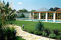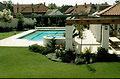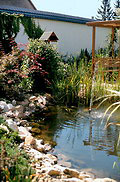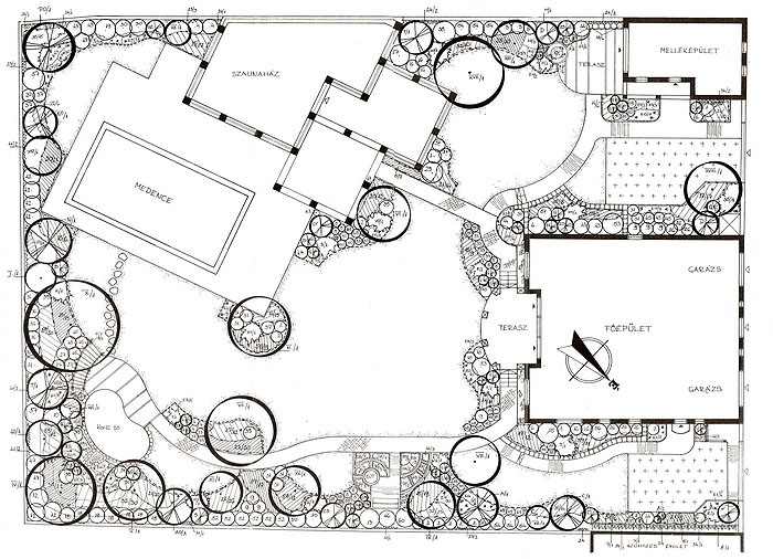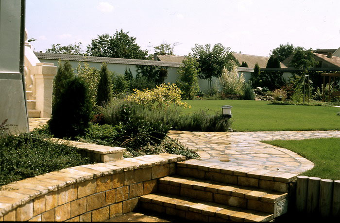 Terv: 2001, elkészült: 2002Telekterület: 1950 m2 2005 az Év Kertje Kiemelt Díj-át kapta Mediterrán táj – e két szó hallatán sokunk lelki szemei előtt a szikrázó napsütés és a mélykéken csillogó tenger mellett, gyantaillatot árasztó, hosszútűjű fenyőkkel és illatos félcserjékkel tarkított táj képe jelenik meg. „Divat” lett a „mediterrán stílusban” kialakított kert, mert élő növények formája, színe, illata a hőn áhított napsugárra, a meleg nyári napokra és az édes pihenésre emlékeztet bennünket. Mediterrán stílusú kertet elméletileg mindenhol létrehozhatunk. A kérdés csak az, a helyi klimatikus viszonyok és a különböző környezeti tényezők is lehetővé teszik-e tervünk megvalósítását. Ezen kert tulajdonosának mindig fontosabb volt a kert, mint maga az épület, ahol lakott. Az építkezés kezdetekor már azon töprengett, milyen legyen a kert. Ötleteinek rendszerbefoglalását, a nagyméretű kert berendezését szakemberre bízta. Az épület, és a házat a „nyári lakkal” összekötő oszlopos, pergolát idéző épületrész, a mediterrán vidékek házait idézi, szerves egységet képezve az előtte lévő óriási medencével. A kert két telek egybenyitásából lett ilyen nagy méretű, ezért a helyi rendelkezések miatt, a lakóépület melletti, felújított „kis házat” adottságként kellett kezelni. Az épületfalak olyan kerti teret ölelnek körül, ahol intimebb, védett, kissé különálló kertrészt lehetett kialakítani. Az épületeket és a medencét, világos, ugyancsak mediterrán hangulatú mészkőburkolat köti össze, ami ténylegesen Horvátországból származik. Bár a terület látszólag sík, az épület közelében adódó szintkülönbségeket növénykazetták, illetve azok terméskő fala hidalja át. Így a fal mellé ültetett növények, nemcsak az épületet ölelik körül, hanem a különböző magasságú kazetták miatt a felület mozgalmasabb, érdekesebb is lesz. A kertben több különálló, mégis egybenyíló vagy egymástól csak optikailag elkülönülő kerti tér található. Ha több generáció használja a kertet akkor is mindenki találhat magának olyan helyet, ahol nem zavarják egymást. A ház körül két vízfelület is található. Az épület közelében a medence, a kert távolabbi sarkában, pedig egy kerti tó. Talán kicsit soknak tűnhet az egymás közelében lévő két vízfelület, de a kerti tó a családfő fiának kérése volt, így nem lehetett neki ellenállni. A tóparton madáretető várja a „vendégeket”, akik szomjukat is olthatják itt. Az átlátszó vízben halak élnek, a terv értelmében, tó környékén pedig a vízpartra jellemző növényfajok díszítenek. A medence környékén egy tengerparti „villa” kertjébe képzelhetjük magunkat. A télikertben hatalmas citrom és narancsfák illatoznak. A banánfákról, pedig már szüreteltek is a háziak. A kert nagysága, elbírja az átlagosnál nagyobb méretű medencét is. A medence szélén élnek a tulajdonos ”kísérleti nyulai”, a pálmák. Bár ezeket télállónak vásárolták, meghálálják a téli védelmet, és takarást is, és mindig fel kell rá készülni, hogy egy keményebb tél esetleg károsíthatja őket. A kert kivitelezése 2002 tavaszán kezdődött, és 2003 nyarán fejeződött be. A meleg nyári estéken, az is előfordult, hogy apa és fia a szabad ég alatt éjszakázott a kertben. A kert számukra nemcsak az épületet körülvevő zöld, hanem életformájuknak része is. A nyugalom és a béke szigete, ahol a napi tennivalók után a kikapcsolódást és a feltöltődést találják meg. »